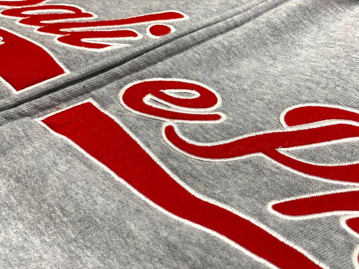 Bij deze bewerking van borduren worden er gedeeltes uit de borduring uitgespaard en vervangen door delen vilt of textiel. Ook vilt als extra onderlaag is een optie. Deze combinatie van textiel en borduren geeft een rijk uiterlijk en wordt vaak gebruikt op hoodies en jassen. Bij deze bewerking is er keuze uit diverse soorten textiel maar kan je zelf ook textiel aanleveren onder voorwaarde dat het wel verwerkt kan worden. Leverbaar vanaf 25 stuks