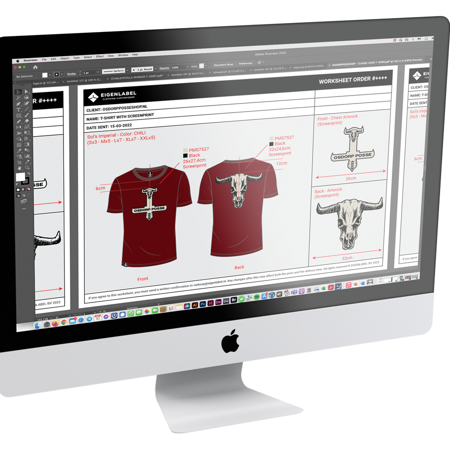 Stuur ons jouw logo of ander digitaal artwork. Aan de hand van de door jou gekozen bewerkingstechnieken en type kleding maakt ons verkoopteam een scherpe offerte voor je.